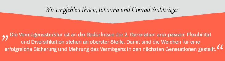 „Nach dem 2. Weltkrieg haben unsere Eltern unser Unternehmen zu einem Weltmarktführer gemacht. Wir Kinder sind nicht auf operative Ebene tätig, führen das Unternehmen jedoch fort. Daneben möchten wir im Privatvermögen Liquidität aufbauen und das Vermögen diversifizieren, um es zu vermehren und wieder an unsere Kinder weitergeben zu können.”