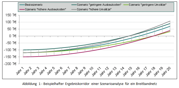 Grundlage des Businessplanes ist die Festlegung der Modellgestaltung und die darauf basierende Herleitung der wirtschaftlichen Konsequenzen. Diese werden im Zuge einer integrierten Planrechnung (bestehend aus Plan-Gewinn-und-Verlustrechnung, Plan-Bilanz und Plan-Kapitalflussrechnung) unter Festlegung von Prämissen für die Zukunft ermittelt. Zur Begegnung von Unsicherheiten im Rahmen der Prämissenfestlegung (bspw. in Bezug auf Ausbaukosten, Penetrationsraten, Kostenstruktur oder Preisentwicklung) wird in der Regel eine Szenarioanalyse vorgenommen, um einen Ergebniskorridor abzuleiten, innerhalb dessen sich die wirtschaftliche Entwicklung mit hoher Wahrscheinlichkeit bewegt. Je konkreter dabei die Prämissen hergeleitet werden, desto enger kann dieser Ergebniskorridor gefasst werden.