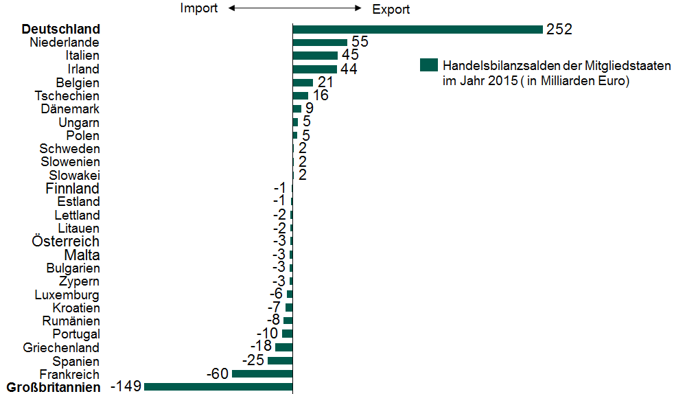 Entsprechend eines Berichts der Frankfurter Allgemeinen Zeitung ist Großbritannien zurzeit mit einem Volumen von 90 Mrd. Euro der dritt­größte Exportmarkt für Deutschland. Trotz vieler Erleichterungen für Großbritannien ist der Inselstaat weiterhin einer der Hauptzahler für die EU – die Argumente der EU Gegner sind ja nicht ganz aus der Luft ge­griffen. Fällt Großbritannien als Geber weg, trifft voraussichtlich eine milliarden­schwere Steuerlast auf Deutschland – mit Einsparungen im EU-Haushalt wird sich das nicht alleine aus­gleichen lassen. Als Folge drohen Steuer­erhöhungen, weshalb der euro­päische Binnenmarkt an Attraktivität verlieren könnte.
