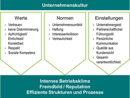 Unternehmenskultur ist weit mehr als das Abbild des internen Betriebsklimas. Sie ist die Grundlage für eine gute Corporate Governance und mithin für effiziente, d.h. zielorientierte Strukturen und Prozesse. Sie ist ein maßgeblicher Faktor für das Fremdbild und die Reputation des Unternehmens. Nicht zuletzt ist die Unternehmenskultur der Nährboden für ein wirksames Risikomanagement und notwendiger „Lückenfüller” für die Bereiche, die sich mit Richtlinien und Strukturen allein nicht regeln lassen. Ausgangspunkt ist eine ausgeprägte Führungskultur, die Vertrauen und eine positive Fehlerkultur in den Mittelpunkt stellt.