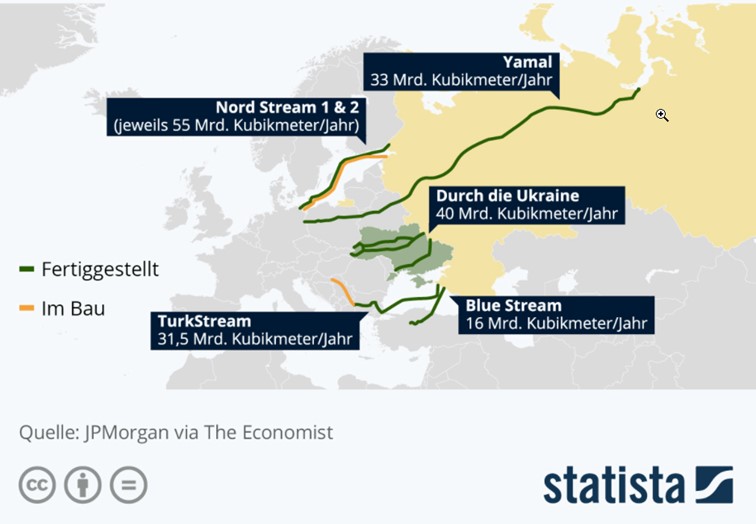 Kapazitäten der größten Gaspipelines zwischen Russland und Europa: