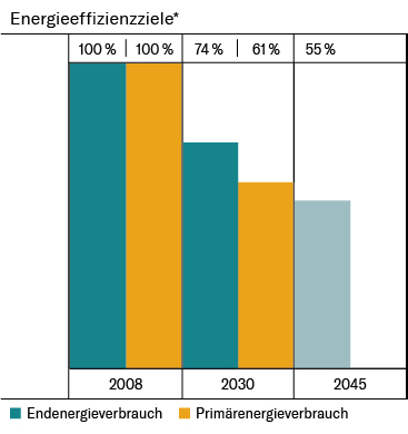 Ausgehend vom Referenzjahr 2008 strebt das EnEfG bis 2030 die Senkung des nationalen Endenergieverbrauchs um mindestens 26,5 % und bis 2045 um mindestens 45 % auf einen gesamten Endenergieverbrauch von maximal 1.400 TWh.