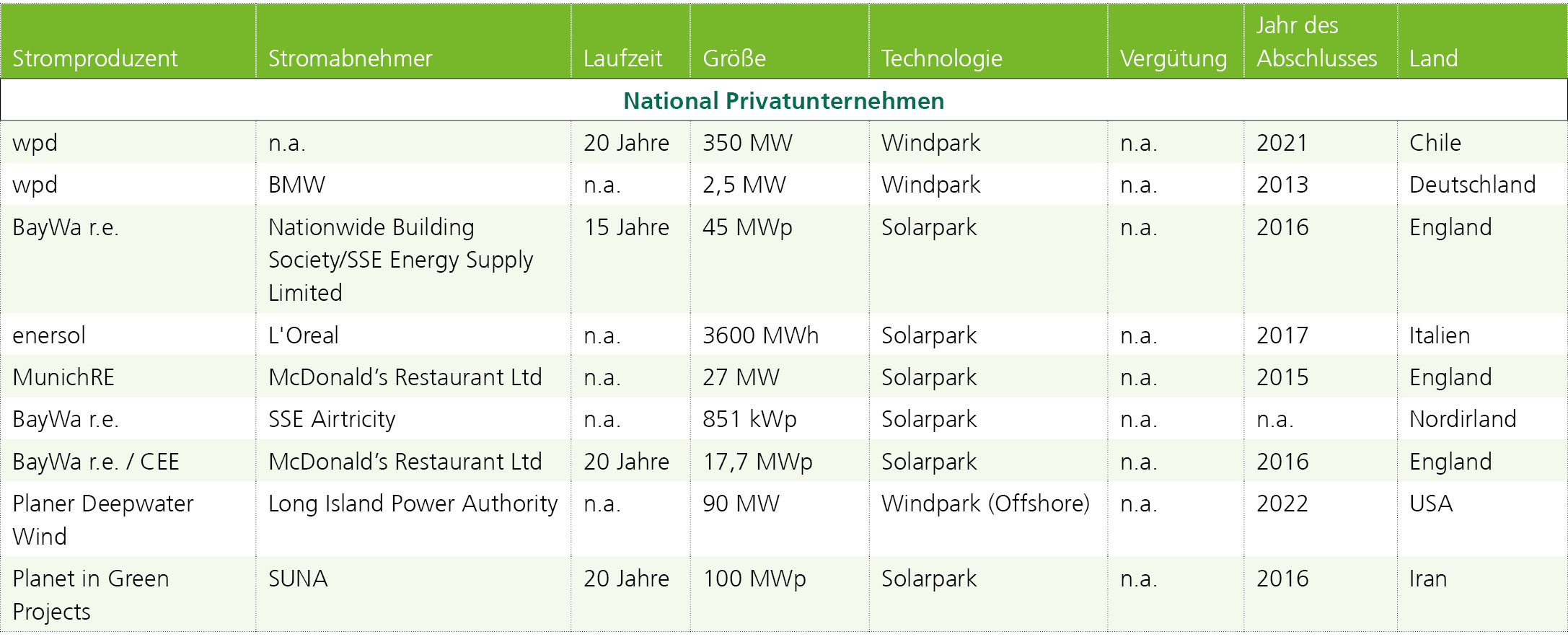 Corporate PPA im Ausland und einige wenige in Deutschland