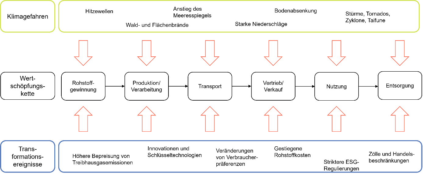 Klimaresilienz beschreibt die Fähigkeit eines Unternehmens, auf klimabedingte Störungen vorbereitet zu sein, angemessen zu reagieren und sich an neue Rahmenbedingungen anzupassen. Dabei umfasst Resilienz sowohl physische Risiken – etwa die Absicherung von Produktionsstandorten gegen Extremwetter – als auch transitorische Risiken wie neue Regulierungen oder sich verändernde Marktbedingungen. Ziel ist es, das Gefahrenpotenzial für das eigene Unternehmen, kurz-, mittel- und langfristig zu senken. Von zentraler Bedeutung hierfür ist ein strategischer Lösungsansatz, der umfassend potenzielle und tatsächliche Gefahren und Auswirkungen entlang der gesamten Wertschöpfungskette abdeckt.