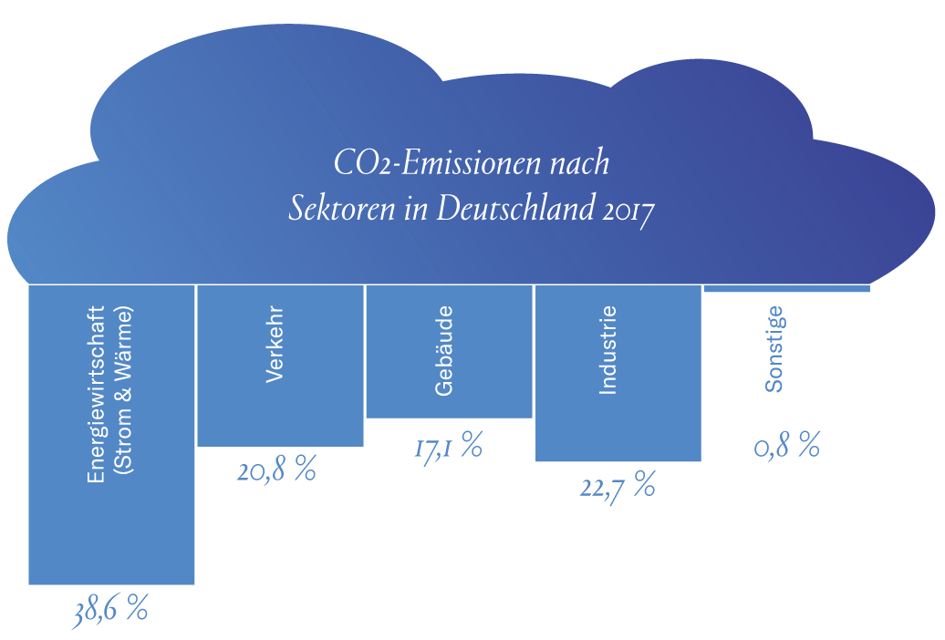 Abbildung 1: CO2-Emissionen nach Sektoren in Deutschland 2017 (Datenquelle: Umweltbundesamt 2019; (https://www.umweltbundesamt.de/daten/klima/treibhausgas-emissionen-in-deutschland/kohlendioxid-emissionen#textpart-4).
