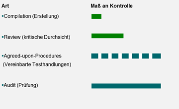 Zusammenfassend lassen sich die verschiedenen Arten der Bearbeitung des Jahresabschlusses nach dem Maß an Kontrolle wie folgt darstellen: