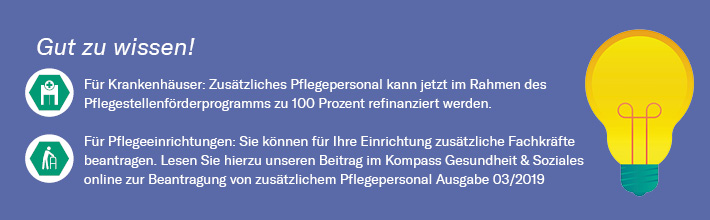 Die Arbeitsmarktsituation für qualifizierte Pflegekräfte wird sich insbesondere in Krankenhäusern durch Personaluntergrenzen und Pflegestellenförderprogramm weiter verschärfen, da zusätzliches Pflegepersonal in den Krankenhäusern außerhalb des Fallpauschalensystems vollständig refinanziert wird und
