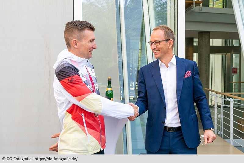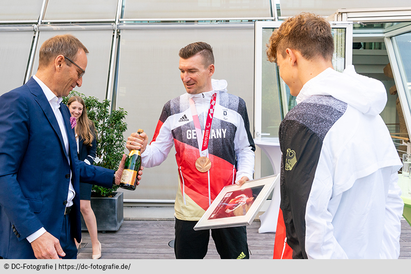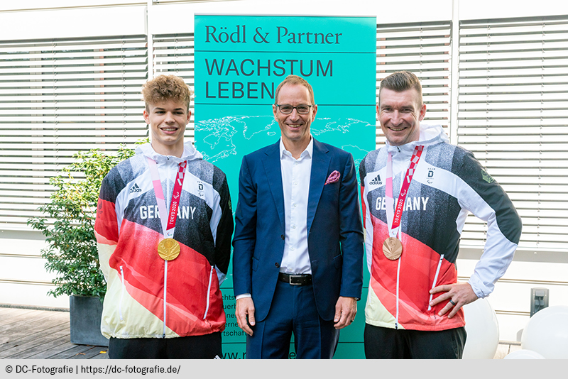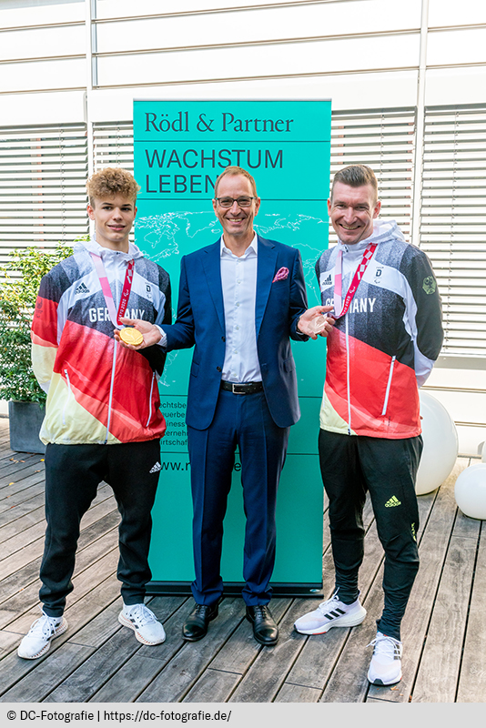 In order to thank Prof. Dr. Christian Rödl personally for his lasting support, Taliso Engel and Matthias Schindler visited us at our Nuremberg headquarters. Over buttered pretzels, which were exceptionally allowed after the Games, they reported on their training preparations as well as their impressions from Tokyo. Proudly they showed their medals and gave a glimpse of next year's upcoming competitions.