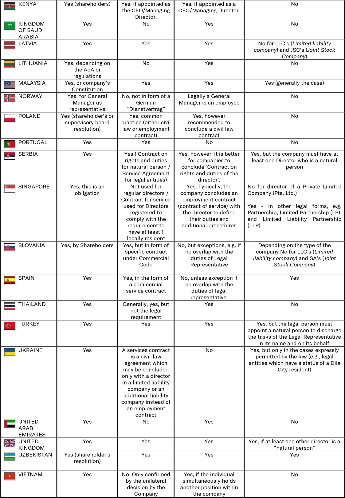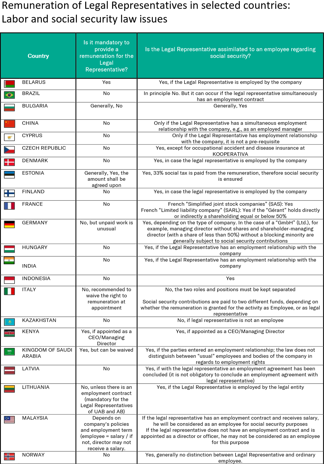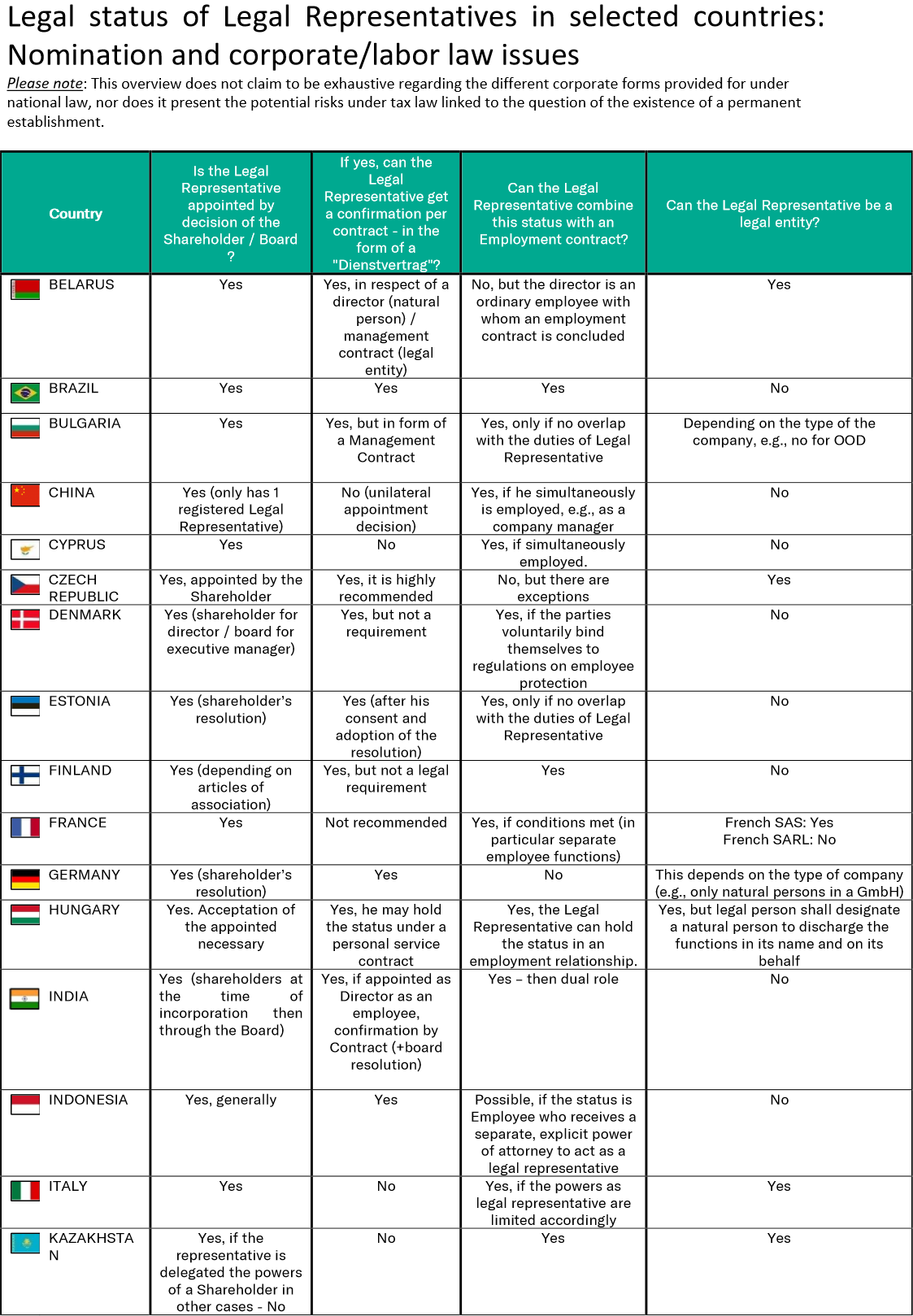 Legal status of Legal Representatives in selected countries: Nomination and corporate/labour law issu​es