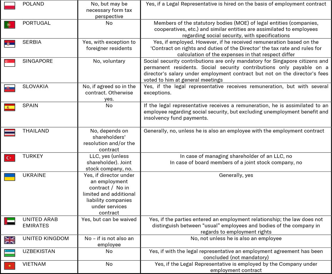 In this context, you will find below an overview of the main aspects regarding national regulations regarding the Legal and Social security status applica​ble to Legal Representatives in selected countries.