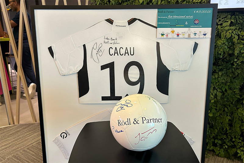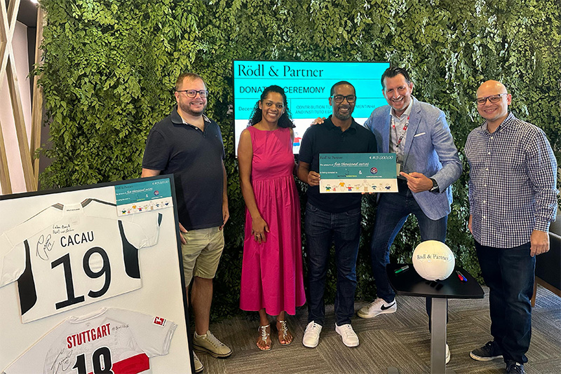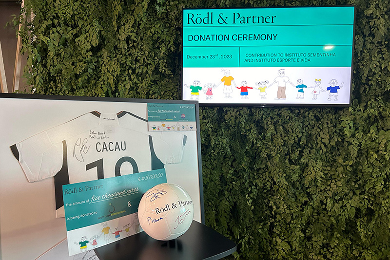 It was finally launched shortly before Christmas. On Saturday, 23 December 2023, Phil Klose symbolically handed over a cheque for 5,000 Euro to Instituto Sementinha and Instituto Esporte e Vida on behalf of the Rödl Employee Fund for Children's Aid. Both organisations are located in the home town of the former professional footballer Claudemir Barreto (aka Cacau) and are committed to making a significant difference in the lives of many children.