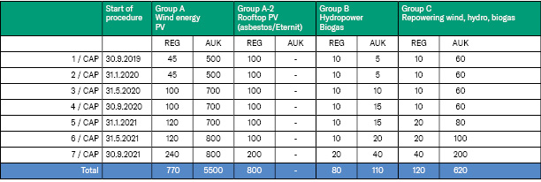 Finally, it will also be possible to participate in the incentive schemes with groups of installations that consist of several power plants, each with a capacity of over 20 kW, as long as the total capacity does not exceed 1 MW as of the registry enrolment date or if the total capacity exceeds 1 MW as of the auction participation date.