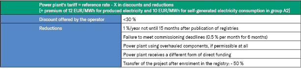 In the case of power plants subject to the auction regime, applicable is the price stated in the operator’s winning bid less reductions, if any.