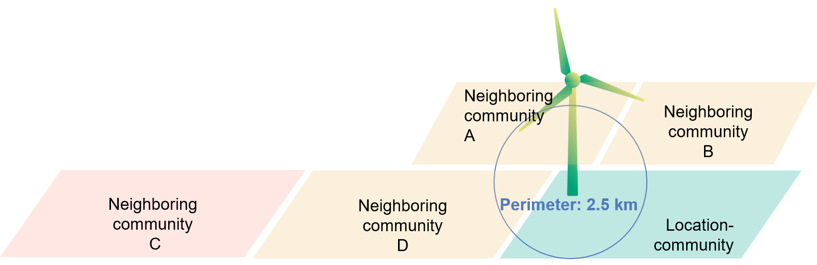 A new apportionment mechanism in favor of the siting municipalities to promote acceptance and to balance interests was created by the possibility of financial participation of municipalities. This gives plant operators the opportunity to involve neighboring municipalities in the proceeds with a total of up to 0.2 ct/kWh. Only municipalities within a radius of 2.5 km around the wind turbine can benefit, and the max. 0.2 ct/kWh is to be divided among them according to the proportion of the affected area within this radius. This cost item can be passed on directly to the grid operator. The plant operator does not incur any direct costs (§ 36k EEG 2021).