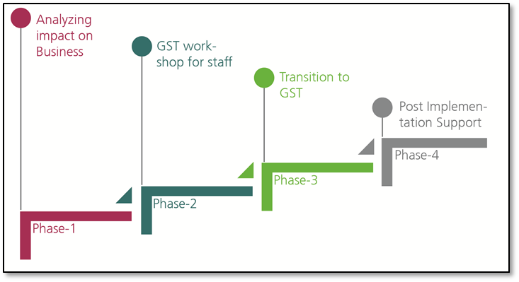 • Rödl & Partner has developed a four stages approach to support Indian companies to adapt to the new GST. It starts with analyzing the specific business impact followed by training in workshops, successful transition and post implementation support. For a detailed description of our approach, please see:  India Goods and Services Tax