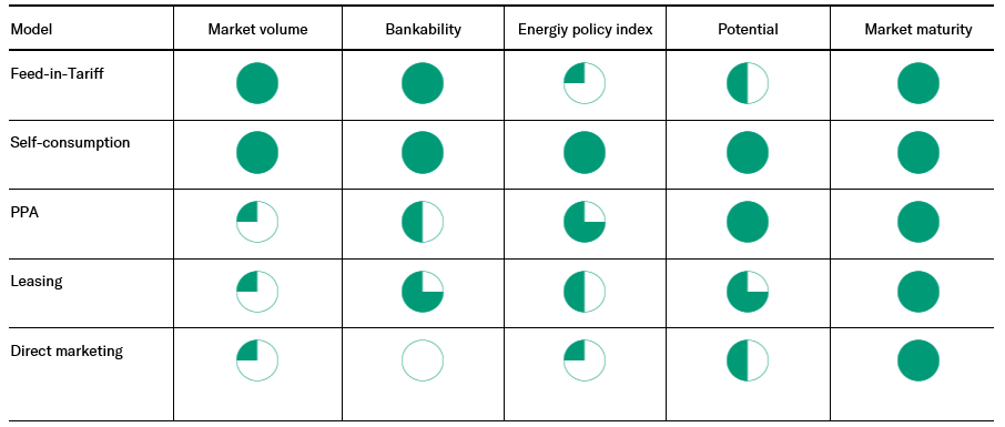 The legally required feature of the self-consumption model where the producer and the final consumer must be the same person is a challenge when structuring the lease agreement. Because this model is less profitable than the pure self-consumption model, it is suitable for projects where the operator of the PV power plant is not able to finance the power plant by himself.
